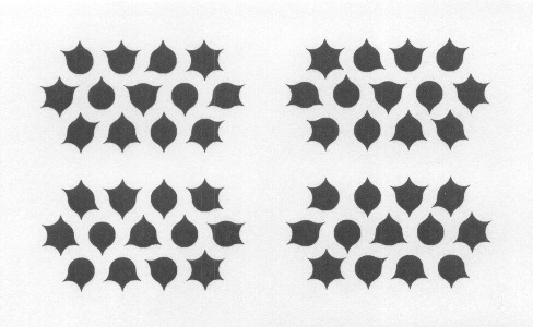 One way to produce output without duplicates is to produce all of the possible solutions and then remove the ones that are duplicates. The preferred method, however, is to not produce the duplicates in the first place. With the Kwazy Quilt puzzle we look at all of the possible pieces in all of the possible rotations. The one piece that we can use to address this issue is this one: