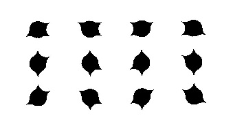 The 12 different orientations of this piece are shown in 3 rows. In each row the glyph in the second column is a horizontal mirror image of the glyph in the first column. The glyph in the third column is a vertical mirror image of the glyph in the second column. The glphy in the fourth column is a horizontal mirror image of the glyph in the third column. By limiting the ways that this piece can be used to a single choice in each of the 3 rows eliminates all of the duplicates that come from mirror images of the solution. In our document showing all of the possible solutions this piece always appears in one of the 3 orientations shown in the first column.